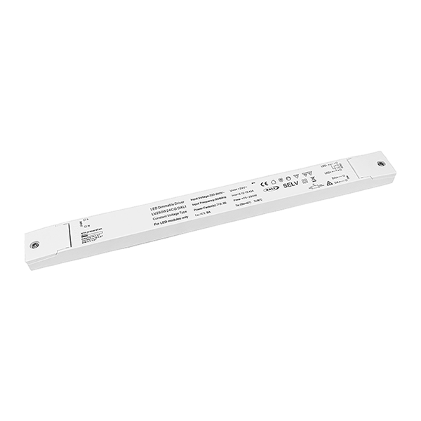 Unabhängiges Betriebsgerät für LED-Lampen/-Leuchten mit Konstantspannung. DALI (DT6) und PUSH dimmbar in ultraflacher Ausführung. Der Treiber ist geschützt gegen Überlast, Kurschluss, Überspannung und Überhitzung. Nach Fehlerbeseitigung folgt ein automatischer Neustart. Der Anschluss erfolgt über Steckklemmen.