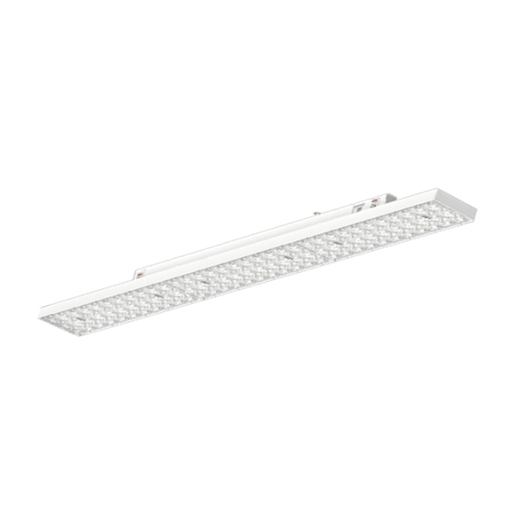 Diese 3-Phasen Schienenleuchte ist kompatibel zu EUTRAC und Global Stromschienen. Durch den breiten Abstrahlwinkel von 90° ist die Schienenleuchte TRACK besonders für die Beleuchtung von Regalen und Gängen. Mittels Phasenwahlschalter kann bestimmt werden, welche Leuchten zusammen auf einer Phase leuchten sollen. Über einen DIP-Schalter am integrierten Intrack Treiber kann die gewünschte Leistung 14W bis 24W eingestellt werden. Die Leuchte besteht aus Aluminium und verfügt über eine PMMA Linsenoptik durch die das Licht einerseits fokussiert und gleichzeitig blendreduziert wird. Optional kann diese Leuchte durch einen Handgriff seitlich um bis zu 30° schwenken.